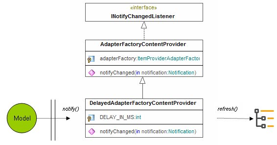 As you can see in the illustration below, the AdapterFactoryContentProvider reacts on model changes (actually notified by the wrapped AdapterFactory and a specific ModelItemProvider) and refreshes its associated viewer instance.