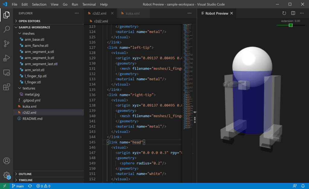 I published the code together with a sample workspace comprising two simple robots on Github. Checkout the workspace and install the released extension if you wanna see it in action. However before doing that, better read about the Gitpod integration first!